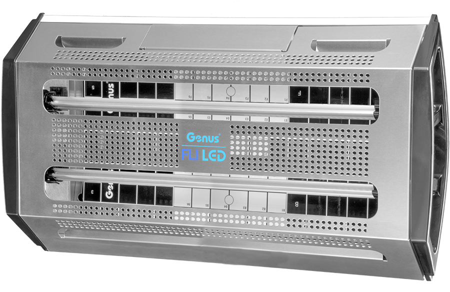Brandenburg Genus FlI LED met de nieuwste LED-technologie is de opvolger van de Genus FlI insectenvanger met UV-lampen. Genus FlI LED is veelzijdig in het gebruik. De insectenvliegenval is geschikt voor wandmontage en voor stand-alone toepassingen. Hang hem horizontaal op, verticaal, of hang hem op in een hoek van de ruimte. Hij is ook los op een tafel, kast of wandplank te plaatsen. Vergeleken met de Genus® FlI Fluorescent vangt hij 7% sneller vliegen binnen 60 minuten. De nieuwste LED technologie met maximale UVA-uitvoer kent nog meer voordelen. U bespaart 56% energie en vermindert 56% CO2-uitstoot met Genus® FlI LED ten opzichte van de traditionele Genus® FlI Fluorescent. Genus® FlI LED bezit 2x30 16W verlichting.