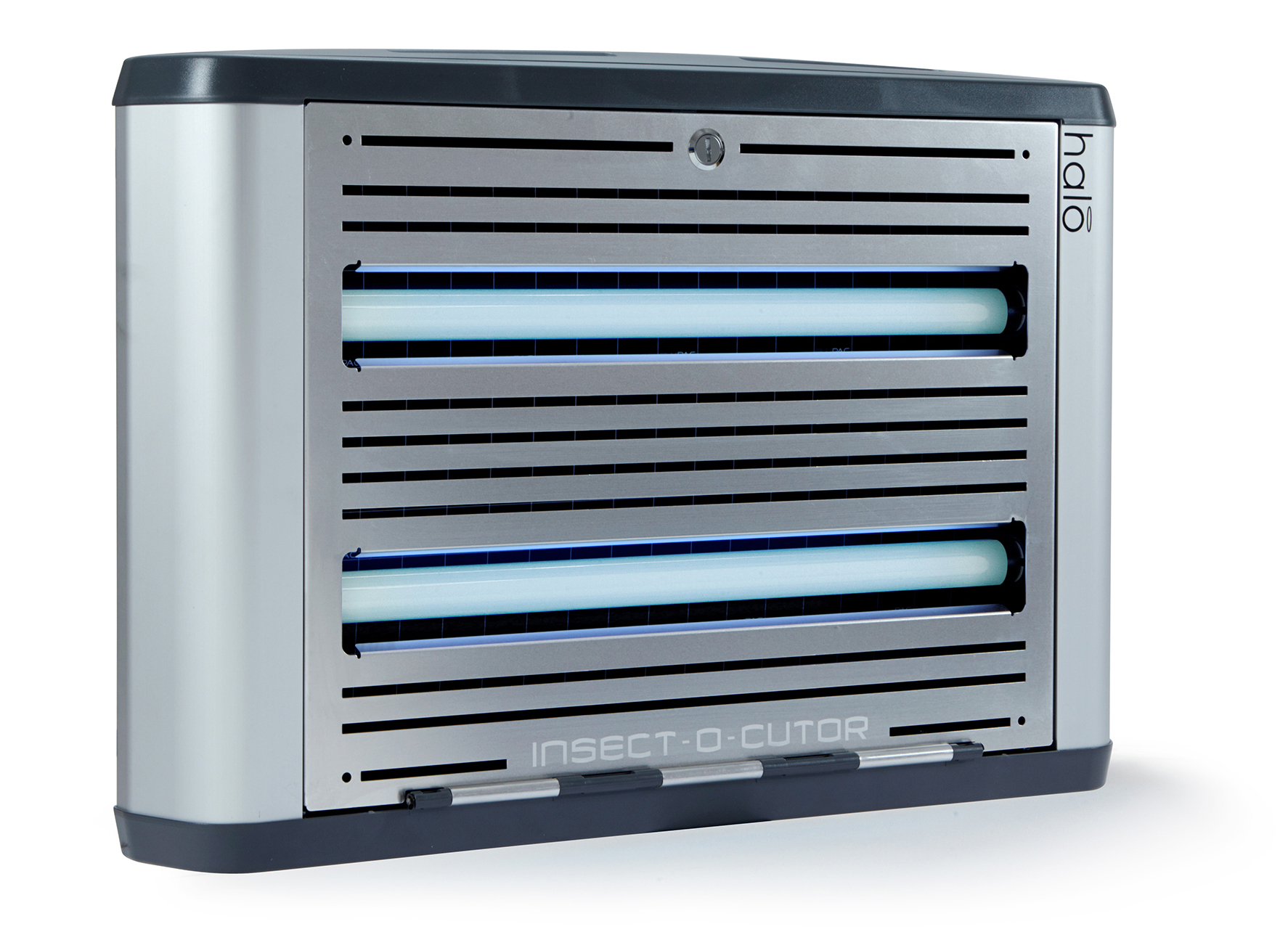 De Insect-O-Cutor Halo30 UV-insectenval maakt deel uit van de uitgebreide Halo®-serie en is geschikt voor gebruik in professionele omgevingen. Deze innovatieve insectenvanger combineert hoge prestaties met een modern en discreet design. Het apparaat met lijmplaat is uitgerust met de gepatenteerde Glupac®-lijmplaat met UV-stabilisator en heeft een dekkingsoppervlak van 80 m². Het robuuste model is voorzien van FEP-gecoate, breukbestendige UV-lampen en is eenvoudig te onderhouden dankzij de scharnierende voorzijde. De montageopties zijn veelzijdig: horizontale of verticale wandmontage of vrijstaand met speciaal ontworpen poten. Halo®-serie insectenvallen: Insect-O-Cutor Halo15, 30 (enkel- of dubbelzijdig) en 45 Watt. Voor vochtige ruimtes is er de Insect-O-Cutor Halo45 Aqua UV-insectenval (enkel- of dubbelzijdig) met IP45-classificatie.