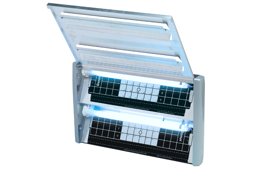 De Genus Spectra professionele insectenvanger is voorzien van de nieuwste techniek om snel en doeltreffend op een hygiënische wijze vliegende insecten te vernietigen. Elektrische insectenverdelger Genus Spectra heeft een compact, stijlvol ontwerp en heeft een zeer duurzame constructie. Professionele vliegenlamp Genus Spectra heeft een tweetal 36 Watt UV-A lampen (360 Nm) die vliegende insecten aantrekken. Door weerkaatsing op het paneel van aluminium aan de voorzijde van de verdelger wordt de hoeveelheid gereflecteerd UV-A licht groter. Hierdoor worden vliegende insecten sneller aangetrokken en komen vervolgens op het lijmbord terecht. Indien een insect met de kleefplaat in contact komt, is loskomen niet meer mogelijk. Het lijmbord is eenvoudig te verwijderen en voldoet volledig aan de eisen van HACCP (Hazard Analysis and Critical Control Points). HACCP: deze insectenlamp met lijmplaat is tevens geschikt voor gebruik in ruimtes waar voedsel wordt bereid. Genus Spectra toepassingen: Voedselbereiding Keuken, grootkeuken Magazijn Productieruimte Afvalruimte Laboratorium Inpakruimte Kantoor Ontvangstruimte Expeditieruimte Restaurant Receptie Hotel Bioscoop, theater Supermarkt Café, Bar Lunchroom Kantine Openbare ruimte Sportfaciliteit Kleedruimte School Stadion Vliegenlamp kenmerken: Voldoet aan de eisen van het HACCP voedselveiligheidssysteem, Grote aantrekkingskracht voor vliegende insecten 2 * 36 Watt UV-A Lampen (365 Nm), Eenvoudig te onderhouden; de uitklapbare reflector maakt vervangen van de vangfolie in één handomdraai mogelijk, Door toepassing van licht met een hoge frequentie brandt het UV-A licht constant zonder hinderlijk te knipperen, Eenvoudig te plaatsen en te monteren als wandmodel, Modern ontwerp van hoogwaardig aluminium, Vliegende insecten worden volledig gevangen en kunnen niet uit elkaar vallen zoals bij vangreflectoren met een elektrisch raamwerk / grid. De kleefplaten zijn milieuvriendelijk en kunnen met het huisvuil worden afgevoerd. De kleefplaten zijn eveneens los verkrijgbaar. Professionele vliegenlamp Genus Spectra biedt een krachtige, hygiënische oplossing voor overlast van vliegende insecten! Brandenburg, Creating Better